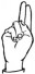 На ћирилици написано РАДЕ ОЛУЈИЋ састоји се из 10 слова [?]. Исписано ћириличном једноручном азбуком за глувонеме: